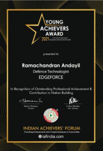 Young Achievers Award received by Ramachandran Andayil (Defence Technologist, EdgeForce Solutions)